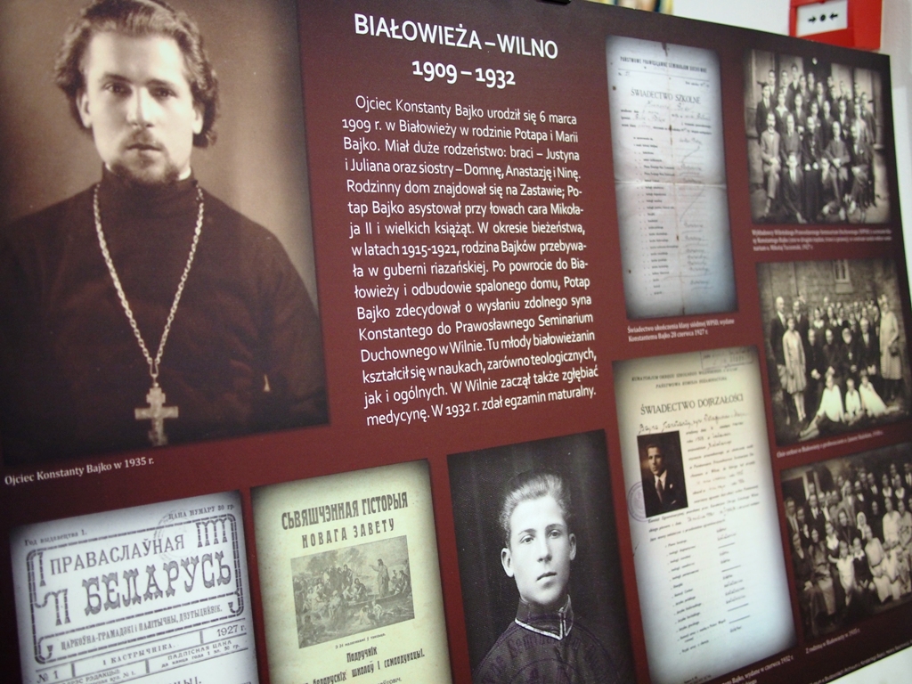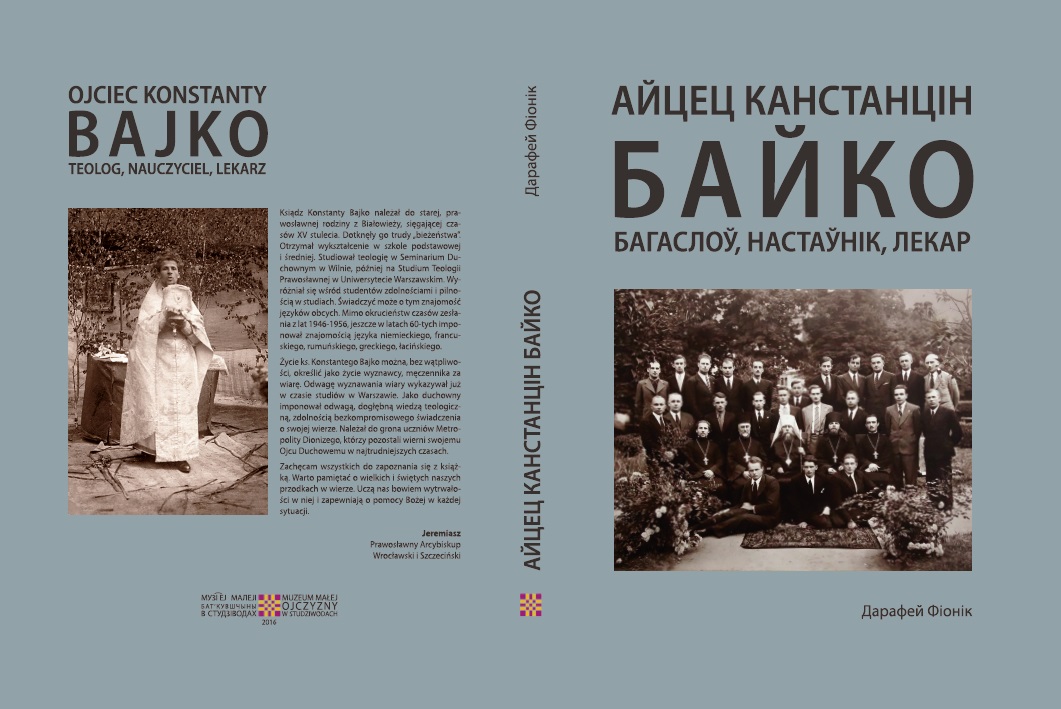Autorskie spotkanie z Doroteuszem Fionikiem wiązało się z promocją jego najnowszych książek z serii Historia i Kultura Podlaskich Białorusinów zainicjowanej w 2013 roku. „Ojciec Konstanty Bajko” to pozycja wydana w 2016 roku, traktująca o życiu wybitnego duchownego polskiej Cerkwi, którego historia opowiada nam o niełatwym losie prawosławia w XX wieku. Konstanty Bajko, pochodzący z Białowieży, jest świadkiem przedwojennego burzenia świątyń na Chełmszczyźnie, gdzie służy jako duszpasterz. Po wojnie już jako prefekt nauczania religii w bielskich szkołach, zostaje porwany przez NKWD i zesłany na Workutę, z której dzięki zdobytej na studiach wiedzy medycznej i pracy felczera, udaje mu się szczęśliwie powrócić. Ojciec Bajko jest również znany jako budowniczy prawosławia na Ziemiach Odzyskanych i wieloletni proboszcz parafii w Stargardzie Szczecińskim a także pomysłodawca Domu Opieki im. św. Stefana w Cieplicach.