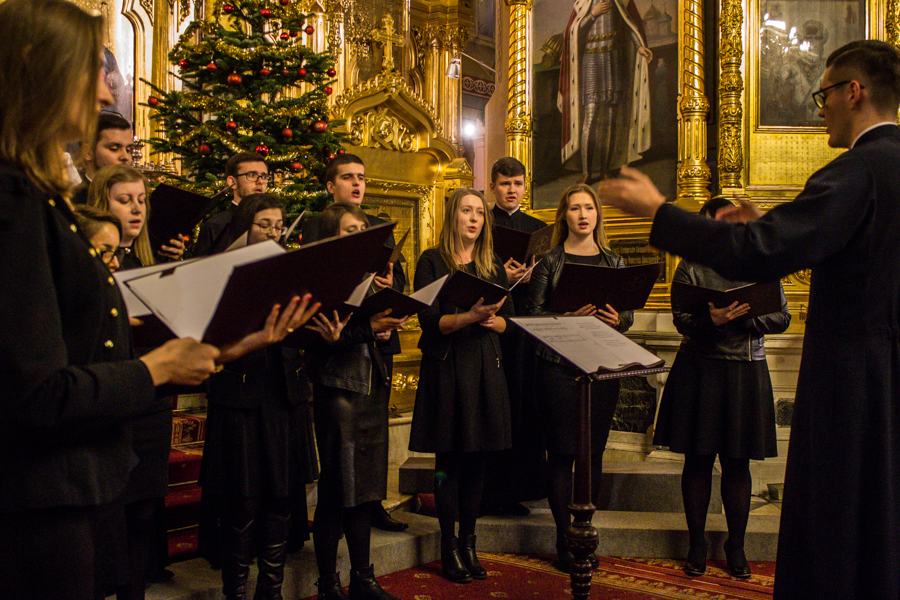 W trakcie Koncertu Kolędy wystąpiły chóry warszawskich cerkwi: młodzieżowy „Lestwica” (dyrygent Bogdan Kuźmiuk), młodzieżowy katedry św. Marii Magdaleny (dyrygent ks. Jerzy Kulik), studentów i absolwentów im. św. Tatiany (dyrygent Bogdan Kuźmiuk) oraz katedry św. Marii Magdaleny (dyrygent ks. protodiakon Sergiusz Bowtruczuk). Po raz drugi z rzędu możliwość wystąpienia przed tak zacną publiką otrzymał chór naszej kaplicy prowadzony przez lektora Rafała Pagóra, który zaśpiewał następujące kolędy: „Spit spakojna Wiflijem”, „Diewa Marija”, „Na jordanskoj reczcy”, „Wstawajte”.