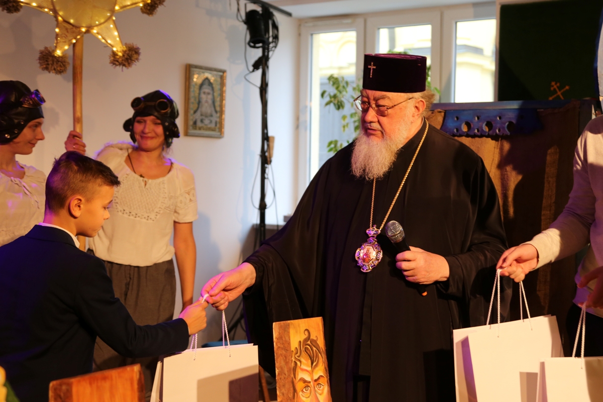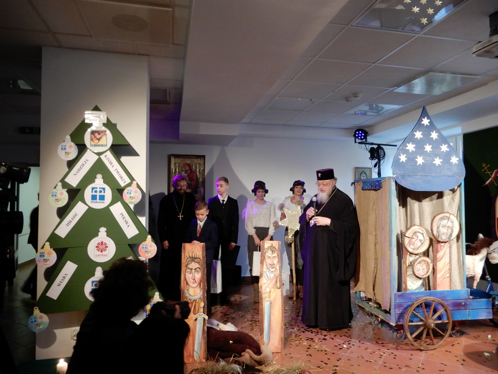 Kulminacyjnym momentem uroczystości było zapalenie świec Wigilijnego Dzieła Pomocy Dzieciom, po którym zebrani mieli możliwość obejrzeć spektakl współczesnego białoruskiego dramaturga Sergiusza Kowalowa pt. „W drodze do Betlejem” przygotowany przez grupę teatralną „Czrewo” prowadzoną przez Joannę Troc. Na pierwszy rzut oka opowiadał on o narodzeniu Chrystusa z perspektywy …. osiołka. W rzeczywistości jednak stawiał znacznie trudniejsze pytania. Jaki jest sens naszego życia? Czy dzisiaj Bóg nadal jest nam potrzebnym? Czym próbujemy go zastąpić? Puenta również była zaskakującą: warto zrezygnować z zaszczytu bycia gwiazdą, by zostać osiołkiem na którym Pan uda się do Egiptu.