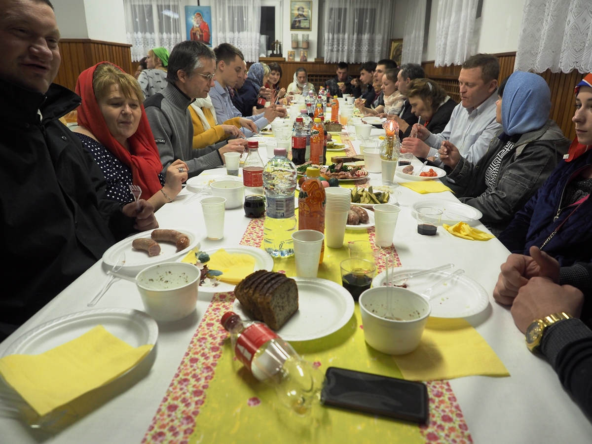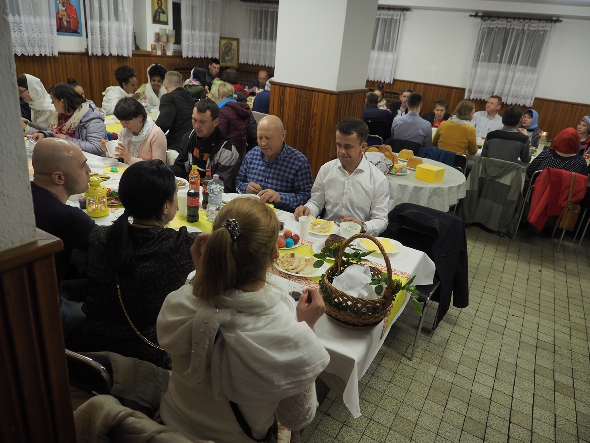 W tym roku wierni parafii wraz z duchowieństwem po raz kolejny mieli okazję podzielić się radością Zmartwychwstania nie tylko podczas wspólnej modlitwy w świątyni ale i przy spożywaniu pierwszego świątecznego posiłku. Na śniadaniu byli obecni obywatele z Polski, Ukrainy, Białorusi, Gruzji a nawet z takich dalekich afrykańskich krajów jak Etiopia czy Erytrea. Oprócz tradycyjnych potraw takich jak: jajka z chrzanem, pascha, żurek nie zabrakło także gruzińskiego przysmaku jakim jest chaczapuri. Centrum Kultury Prawosławnej składa serdeczne podziękowania wszystkim zaangażowanym w organizację tego przedsięwzięcia.