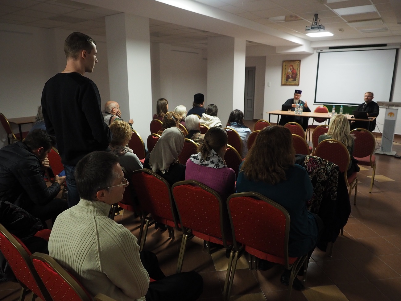 Pierwsze spotkanie otworzył Jego Eminencja metropolita Sawa, zaś temat: „Prawosławie. Czym jest?” w formie prezentacji multimedialnej przygotował ks. prot. dr Doroteusz Sawicki, który w oparciu o bogaty materiał fotograficzny przedstawił piękno i różnorodność Cerkwi prawosławnej na świecie. Prelegent zaprezentował krótki rys historyczny prawosławia na ziemiach polskim, a także wyjaśnił i wskazał na różnice z innymi wyznaniami.