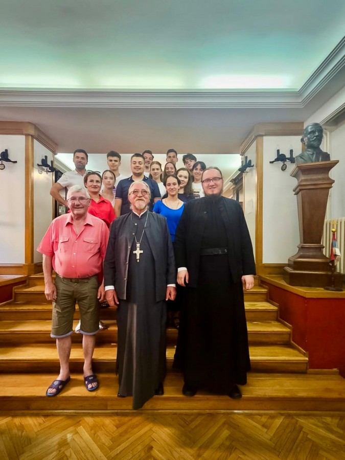 Laureaci spotkali się również z serbskim ordynariuszem wojskowym biskupem Dositejem, a także ojcem Petrem Lukićem, wieloletnim proboszczem belgradzkiej katedry, który wielokrotnie bywał w Polsce wraz z katedralnym chórem. Spotkanie odbyło się w sali Pierwszego Towarzystwa Śpiewaczego, gdzie w XIX wieku pracował nad swoimi kompozycjami wybitny serbski kompozytor Stevan Mokranjac.