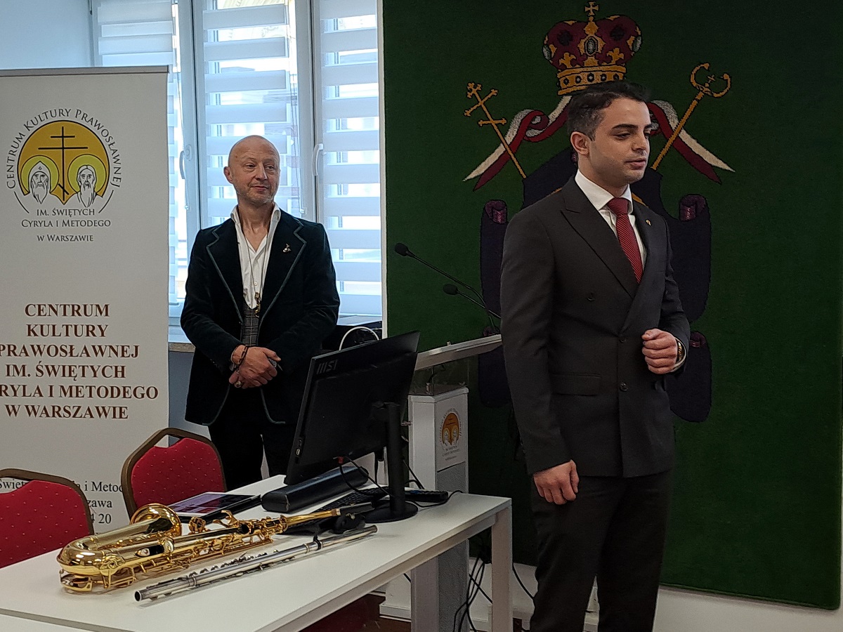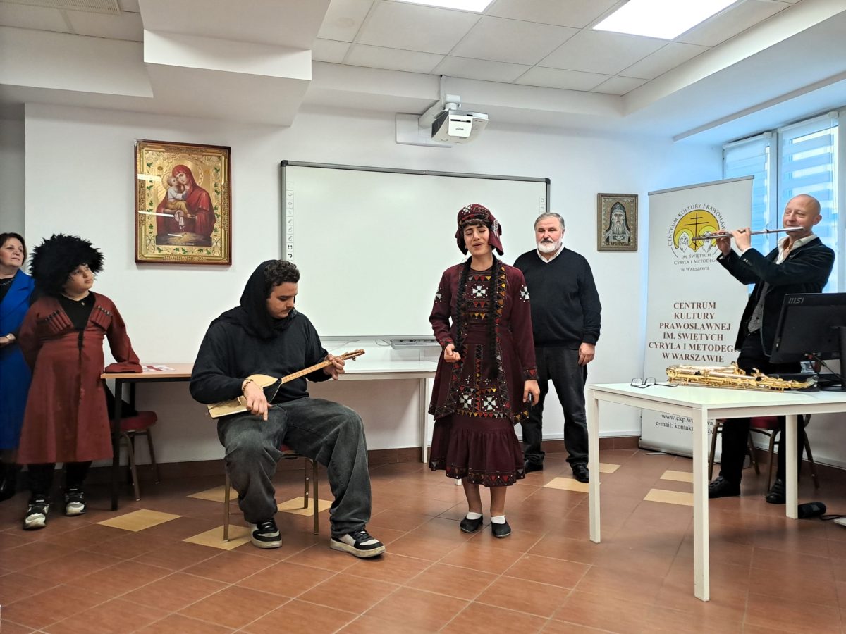 Po nabożeństwie uczestnicy udali się do Centrum Kultury Prawosławnej, gdzie odbyła się część artystyczno-edukacyjna wydarzenia. Spotkanie otworzył ks. prot. dr Andrzej Lewczak, dyrektor CKP, który w słowie wstępnym przekazał pozdrowienia od Jego Eminencji, Wielce Błogosławionego Sawy, Metropolity Warszawskiego i całej Polski. Następnie powitał wszystkich przybyłych gości, w tym Jej Ekscelencję Panią Dianę Zhgenti, Ambasador Gruzji w Polsce, Pana Tornike Tsirekidze – prezesa diaspory gruzińskiej w Polsce, Pana Dawida Gamcemlidze oraz licznie zgromadzonych uczestników. Uroczystość uświetnił koncert znakomitego saksofonisty Alekseja Smirnova z Londynu.