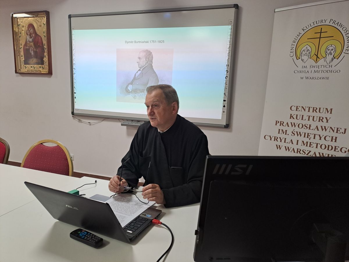 W niedzielę, 9 września 2025 r., w Centrum Kultury Prawosławnej w Warszawie odbyła się kolejna prelekcja pt. „Życie i twórczość Dymitra Bortnianskiego”. Z wykładem wystąpił protodiakon dr Sergiusz Bowtruczuk, który przybliżył słuchaczom biografię kompozytora, omówił najważniejsze etapy jego działalności artystycznej oraz podkreślił ogromny wpływ Bortniańskiego na rozwój prawosławnego śpiewu liturgicznego. Zwrócił uwagę m.in. na jego wkład w kształtowanie klasycznego stylu chóralnego oraz rolę, jaką odegrał w reformowaniu praktyki muzycznej w XVIII-wiecznych cerkwiach. W trakcie spotkania zaprezentowano również fragmenty jego utworów, ilustrujące charakterystyczne cechy stylu kompozytora oraz jego wkład w kształtowanie kanonu muzyki cerkiewnej.